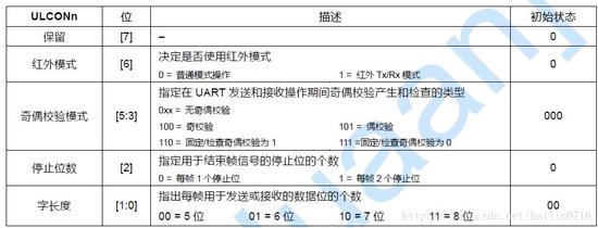 rULCON0=0x03; //不采用红外线传输模式,无奇偶校验位,1个停止位,8个数据位