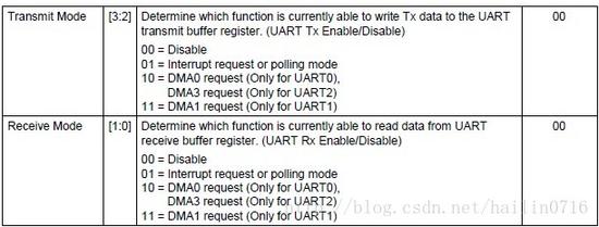 UCONn寄存器:它用于选择UART时钟源、设置UART中断方式