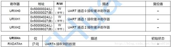 URXHn寄存器,当UART接收到数据时,CPU读取这个寄存器,即可获得数据。