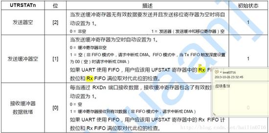 UTRSTATn寄存器:表明数据是否已经发送完毕、是否已经接收到数据
