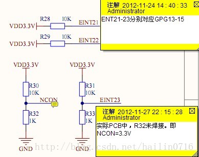 GPG15=0.3V(按照图3的ARM芯片直流电气特性定义<0.8V,为低电平),NCON=3.3V(高电平)