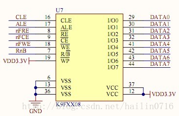 图1实际芯片型号K9F2G08U0B 图2引脚配置