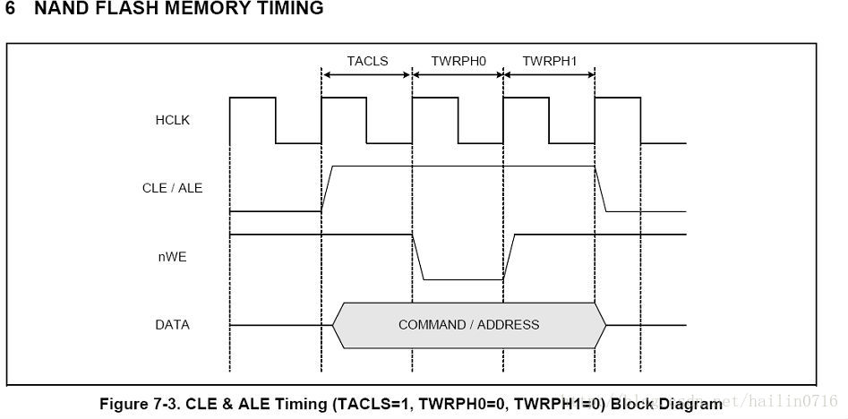 由上面两个时序图对比可知:TACLS就相当于tCLS或tALS参数,TWRPH0就相当于tWP,而TWRPH1就相当于tCLH或tALH。