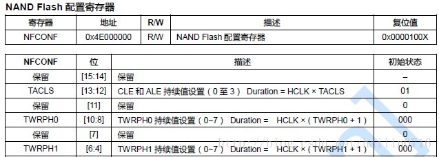 在nand flash的NFCONF寄存器中