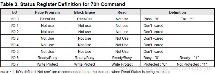 读取70h状态后,返回值说明(由K9F2G08U0B的datasheet提供)
