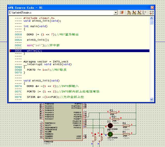 iar可以生成各种可执行文件,比如ubrof .d90,可以在proteus仿真中进行源码级调试,很方便。