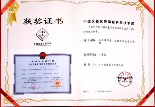 2019年11月25日,中国仪器仪表学会在北京举办40周年庆典晚会,ZLG致远电子ZDS4054Plus 以“高存储深度、高捕获率数字示波器”荣获中国仪器仪表学会科学技术奖三等奖。