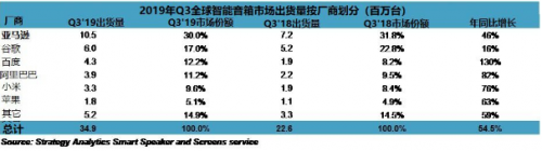 2019年11月28日 | 2019年Q3 亚马逊智能音箱出货量扩大了其领先优势