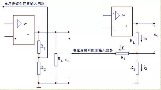 反馈信号与输出电压成正比为电压反馈,反馈信号与输出电流成正比为电流反馈。将输出端短路,若反馈不存在,则为电压反馈。