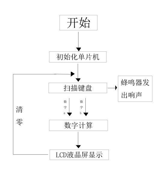 用4*4的矩阵键盘组成0-9数字键及加、减、乘、除、等于、清零按键,LCD屏幕实时显示输入的数字和运算符号,每按下一个按键都有蜂鸣器发出的响声。从矩阵键盘输入一个数字,选择运算符,再输入一个数字,然后按下“等于”键,最后的计算结果会呈现在LCD屏幕上。