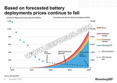 该机构分析发现,低廉的电池价格正带动更多行业走向“电动化”,比如电动商用车、电动货运车正越来越受欢迎。而对面向大众市场的电动乘用车来说,低廉的电池价格仍将是推动产品应用的最关键指标之一。