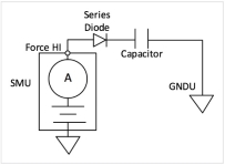 图11. 使用SMU和串联二极管测量电容器泄漏。