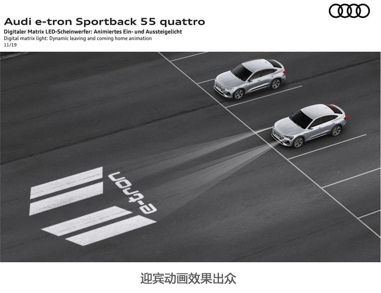 这套科技感十足的头灯组将于明年进入到e-tron Sportback的配置目录中,看来灯厂此次又走在了老对手的前面。