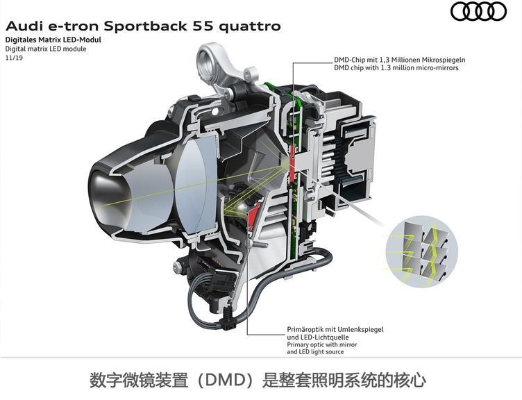 在奥迪新车e-tron Sportback的配置表中,一项名为“百万像素数字矩阵LED大灯”的技术看上去不明觉厉,其实这款大灯是LED灯的变种,不同的是它有以往大灯无法企及的高像素。