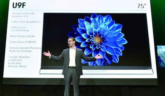 据了解,OLED拥有自发光的特性,无需背光源,这使得OLED电视在色彩方面具有天生优势,而且少了背光源模块,OLED电视可以做到更加轻薄。