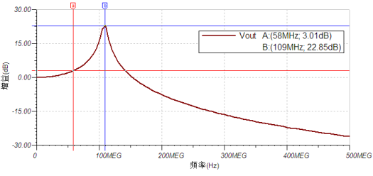 下图为用该等效电路仿真出的频谱特性曲线: