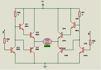 用分立元件构成的直流电机驱动电路,其优点是:电路由分立元件组成,通过分析电路,能直观的了解驱动电路的工作原理,对于理论学习是非常有帮助的。其缺点是:电路过于复杂,在制作实物时容易出错,另一方面,分立元件过多,其可靠性很难保证。