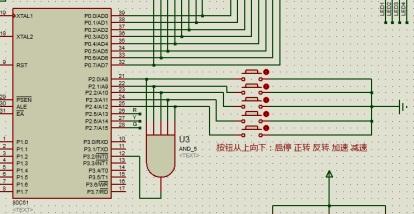 具体要求如下:K0为启动/停止控制、K1正转、K2反转;K3加速,K4减速,用3个发光二极管显示状态:正转时红灯亮,反转时黄灯亮,不转时绿灯亮。并利用4位LED数码管显示电机转速。