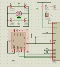 此外,设置三个发光二极管,来显示电机的运行状态。当电机停止时,绿灯亮,当电机正转时,红灯亮,当电机反转时,黄灯亮。