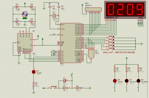 点击正转按钮,电机开始正转,并维持一定的速度,速度显示在数码管上为0209,右下角红灯亮,表示电机处在正转状态,如图18: