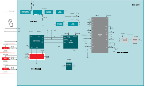 此设计可通过AFE4403和ADS1292R生物感应前端集成电路来获取如心电图(ECG)、SpO2、心率和呼吸频率等参数。此设计可与软件可配置的心脏起搏器检测模块参考设计相结合以支持起步脉冲检测,并可连接3个0.1摄氏度的精确温度传感器(TMP117)来测量皮肤温度。为测量ECG,此设计采用了标准的湿式ECG电极,还可使用传输型指套式传感器来测量SpO2。采集的原始数据由板载MSP432P401微控制器通过隔离式通用异步收发器(UART)接口以460.8 Kbps的速度传输至后端/处理器或PC。一个标准的USB端口或USB充电的锂离子电池可为此设计提供动力。