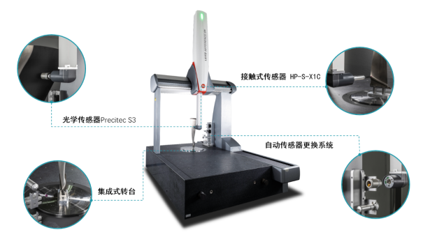 Leitz Reference BX集成了4轴联动扫描功能,非接触式白光传感器和传感器自动更换系统,还可支持超高精度的接触式传感器来满足严苛的测量公差要求,以及非接触式检测难以接近的特征。