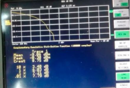 频谱仪测试中,还有一个功能为峰均比测试(CCDF),某一调制信号的峰均比测试如下图。