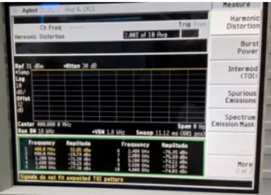 频谱仪可以测试被测信号的各次谐波,可以用频谱仪自带的频谱测试功能,MEASURE-harmonic测试,也可以通过测试信号的频率f,然后改变频谱仪的中心频率到2f,3f….然后PEAK一下,测试各次谐波的功率。