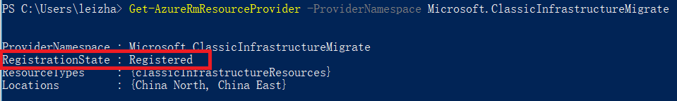 Get-AzureRmResourceProvider -ProviderNamespace Microsoft.ClassicInfrastructureMigrate