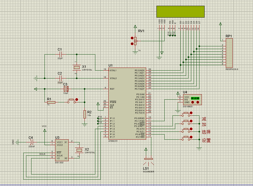 单片机万年历仿真原理图如下