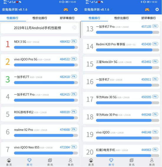 其对手麒麟990平均实际跑分在42W分左右,最高能达到47W(荣耀V30 Pro);联发科天玑1000,官方公布数字为51W,因此不论是面对自家的上一代旗舰还是现阶段的主要旗舰芯片对手,高通骁龙865还是有综合上压倒的优势。