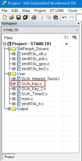 1)写一个驱动GUA_Key.c (存放在工程的USER文件夹中)