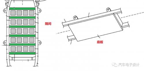 在福特的设计构想中,在车身左右框架中设置多根横梁,由这些横梁对整个结构进行分割,在里面容纳电池,这个分割出来的空间下面有底板进行支撑