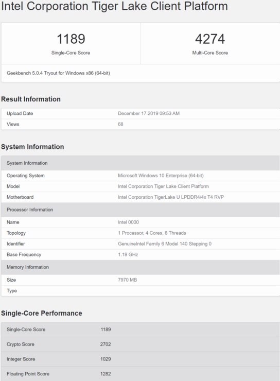 根据WCCFTech的报道,英特尔的 Tiger Lake-U 10nm处理器再次出现在Geekbench上,单核和多核跑分都提升巨大,一起来看一下吧。