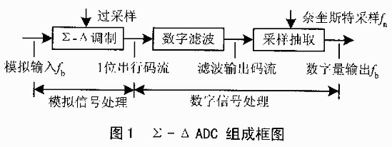 ∑-ΔADC主要由∑-Δ调制器、数字滤波和采样抽取等几部分组成,如图1所示。