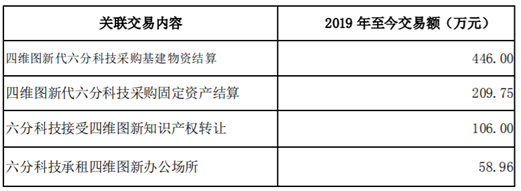 六分科技于2019年6月引入中国电信集团投资有限公司、中国互联网投资基金等增资股东后正式开始独立运营。2019年1-8月,六分科技尚未实现营业收入,净利润为-723.62万元;截至2019年8月末,六分科技总资产为3,259.35万元、净资产为2,776.38万元。2019年截至目前,六分科技与四维图新的关联交易情况如下: