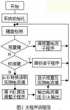 单片机程序所要实现的功能是:独立键盘对PIC16F877A单片机输入数据,PIC16F877A单片机对获得的数据进行处理,并送到10位数模转换器TLC5615,实现对电流的控制。