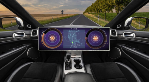 图 1:跨仪表板大部分区域的未来信息娱乐系统(数字驾驶舱)的示例