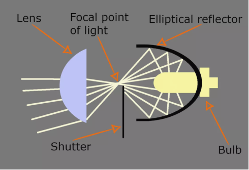 反射器:和经典的反射头灯一样,投影头灯实际上也包括一个叫做反射器的组件。不同之处在于,他们使用的是椭圆形反射器,而不是抛物线形的反射器。这种形状的差异导致从投影前大灯的灯泡发出的光聚焦在反射器前部附近的一个狭窄点上,之后再通过快门。