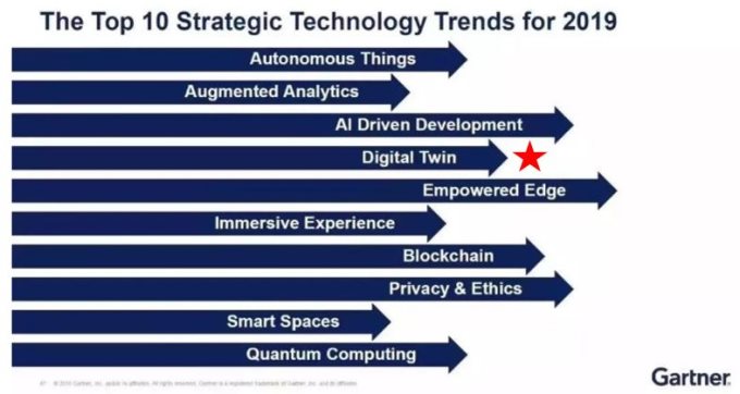 根据全球知名咨询公司Gartner2019年初的调查,部署物联网的企业和组织中,已有13%应用数字孪生,62%的组织正在准备使用数字孪生。Gartner还将数字孪生列为2019年十大战略性技术趋势。