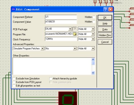 在电路连接好后,双击AT89C51在弹出对话框中选择单片机中要输入的程序,见下图: