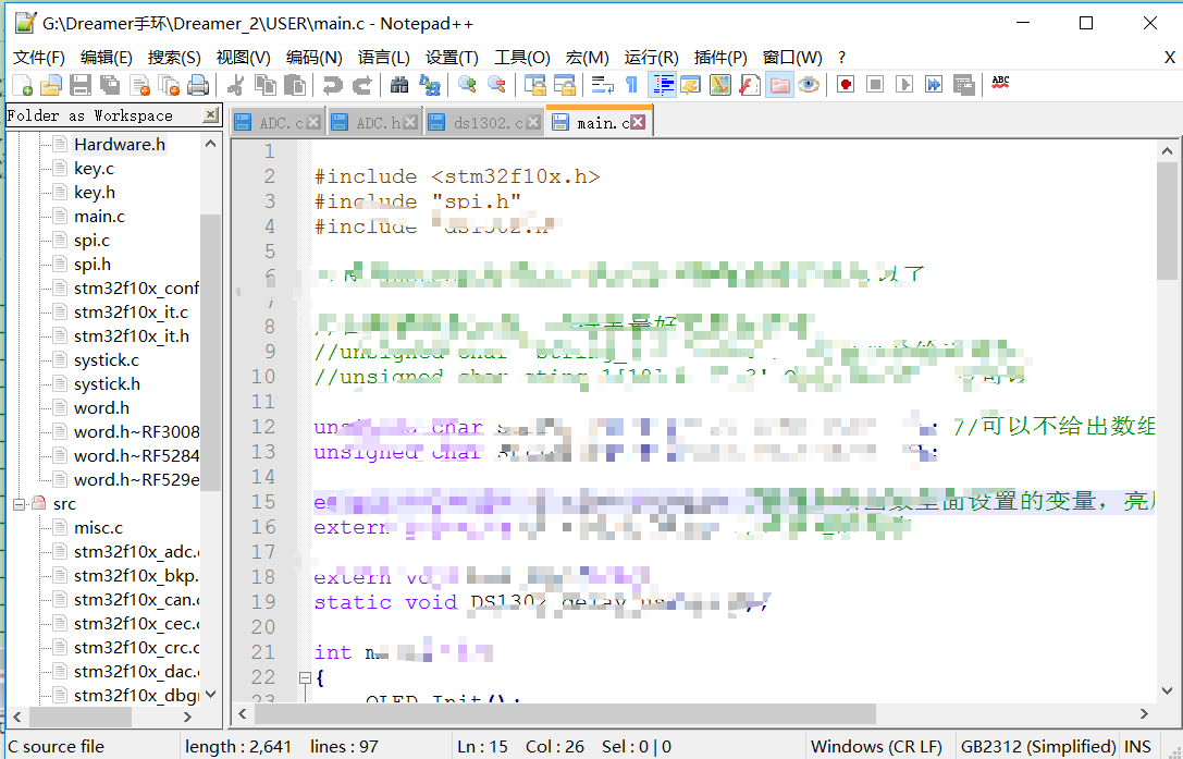 然后就会打开界面简洁完美的notepad++,但是刚打开会发现他默认打开的是你在MDK里面编辑的当前文件,不能打开你的工程中的其他文件。而且会发现notepad++的左侧好像少了什么东西。