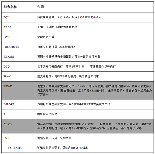 在介绍之前,我们先了解一下ARM芯片启动文件中涉及到的一些汇编指令的用法。
