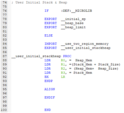 这一部分也就是把初始化的堆栈地址赋值给单片机的对应寄存器以方便C程序进行分配释放使用。