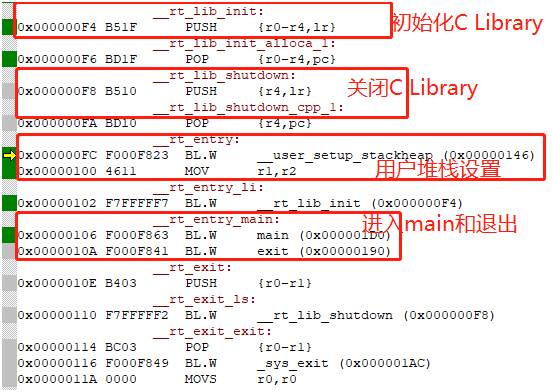 可见我们在上文中所描述的启动过程中看到的__main、__rt_entry、__scartterload以及__rt_lib_init等,就是C library中的代码。