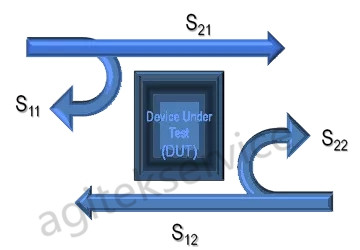 S11定义为端口1反射的能量占端口1入射信号的比例,S21定义为传输到DUT端口2的能量占端口1入射信号的比例。参数S11和S21为前向S-参数,这是因为入射信号来自端口1的射频源。对于从端口2入射信号,S22为端口2反射的能量占端口2入射信号的比例,S12为传输到DUT端口1的能量占端口2入射信号的比例。它们都是反向S-参数。