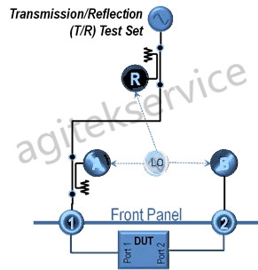 当开关连通端口1,分析仪测量前向参数。当开关连通端口2,你无需重置DUT外部连接,就可以测量反向参数。端口2处的定向耦合接收器B测量前向传输参数和反向反射参数。接收器A测量前向反射参数和反向传输参数。