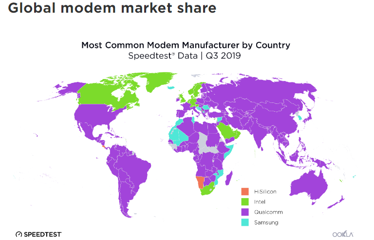 2019年12月27日 | Speedtest公布了全球各国最常用基带分布图