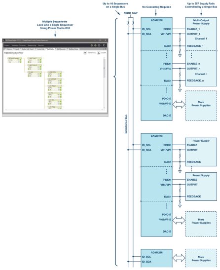 图1.可以通过IDB将多个ADM1266组合在一起,轻松扩展时序。