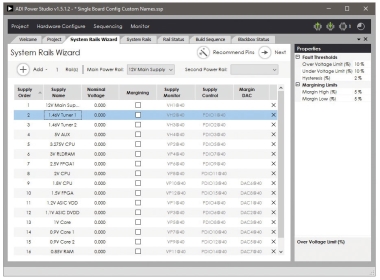 图3.一步配置整个系统。无论电压轨数量是多少,系统电压轨向导通过相同界面,引导设计人员完成整个序列配置过程。注意,用户自定义的电压轨名称有助于迅速轻松识别各电压轨。